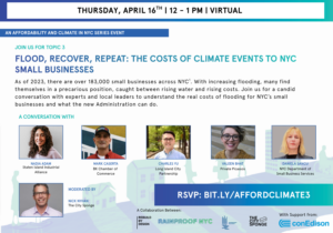 Topic 3 in “Affordability and Climate in NYC” Discussion Series from Rebuild By Design, Waterfront Alliance, and The City Sponge,