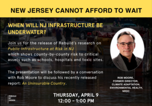 Join us April 9 for a presentation on Rebuild’s latest report, NJ Underwater: Public Infrastructure at Risk, analyzing flood risk