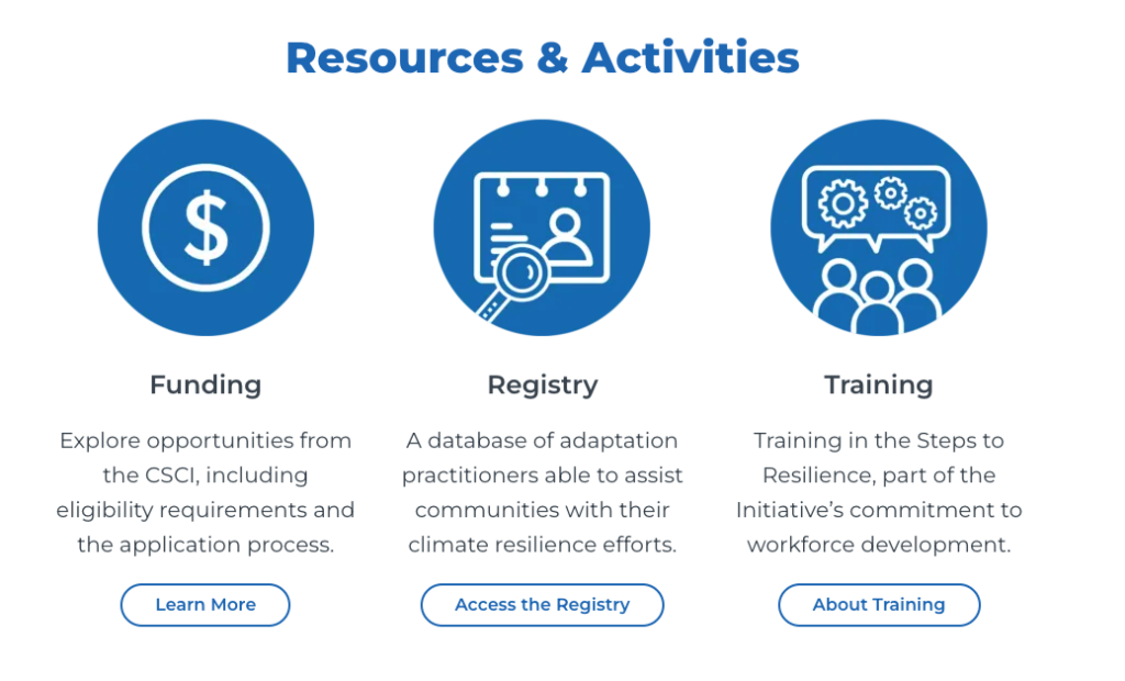 The Climate Smart Communities Initiative (CSCI) supports local leaders and adaptation practitioners in advancing climate adaptation and resilience plans and projects in communities across the United States through connection training and funding.