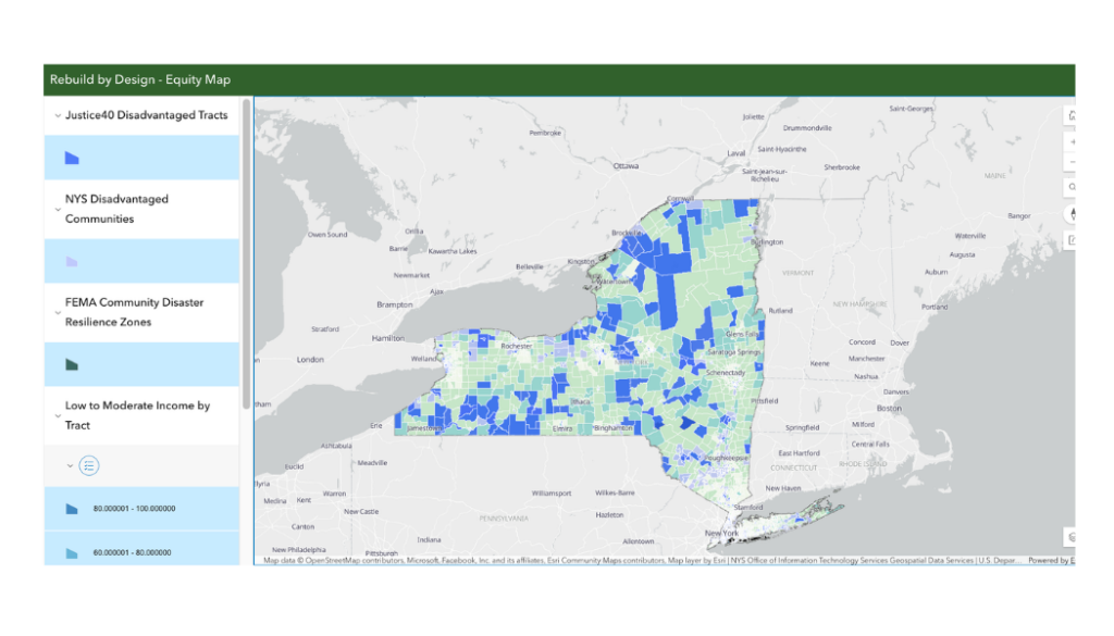 This interactive map provides key insights into equity and resilience across New York State. It identifies areas that require enhanced support, such as communities vulnerable during disasters, and regions with significant populations living in low to moderate-income conditions. It can help you identify which criteria the area you are working in qualifies for.