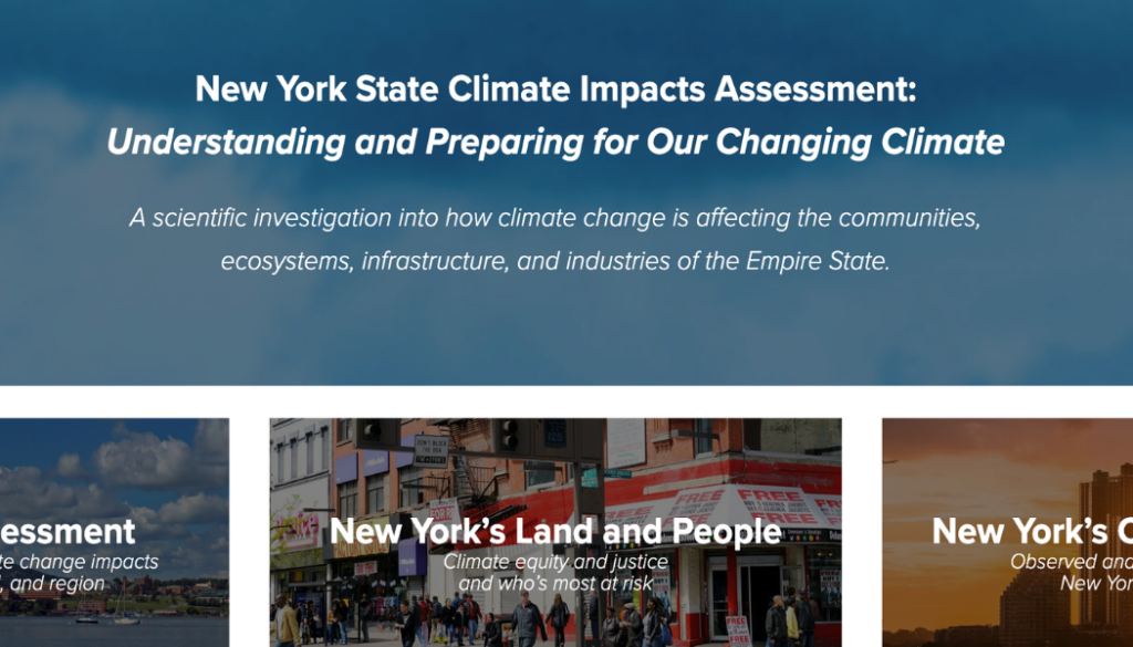 The New York State Climate Impacts Assessment is a peer-reviewed technical report that details how climate change is affecting New York State’s communities, ecosystems, and economy. It describes how climate change impacts are likely to change in the decades ahead and shares information on adaptation and resilience.