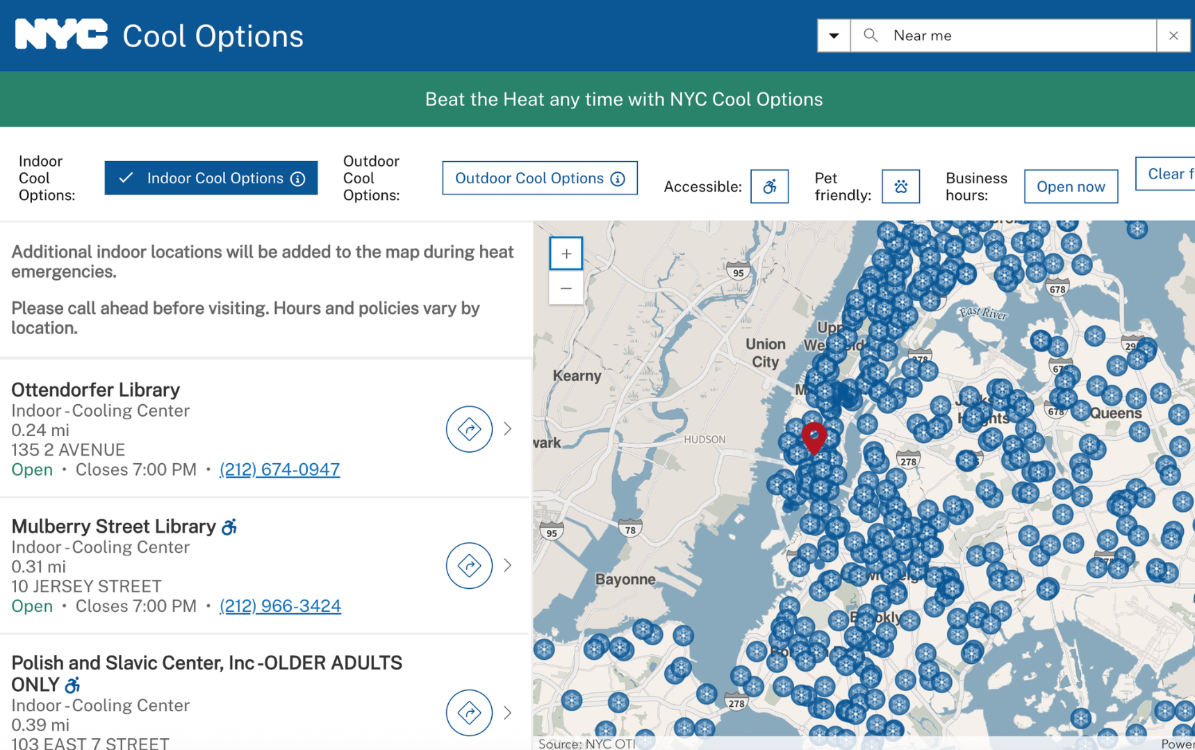If you don’t have air conditioning, find a cool place to visit nearby, like a friend’s place, a mall, museum, coffee shop, library, or an NYC cooling center. When it’s not scorching out but it’s still hot, you can also cool off at parks, areas with shade, sprinklers, or pools.
